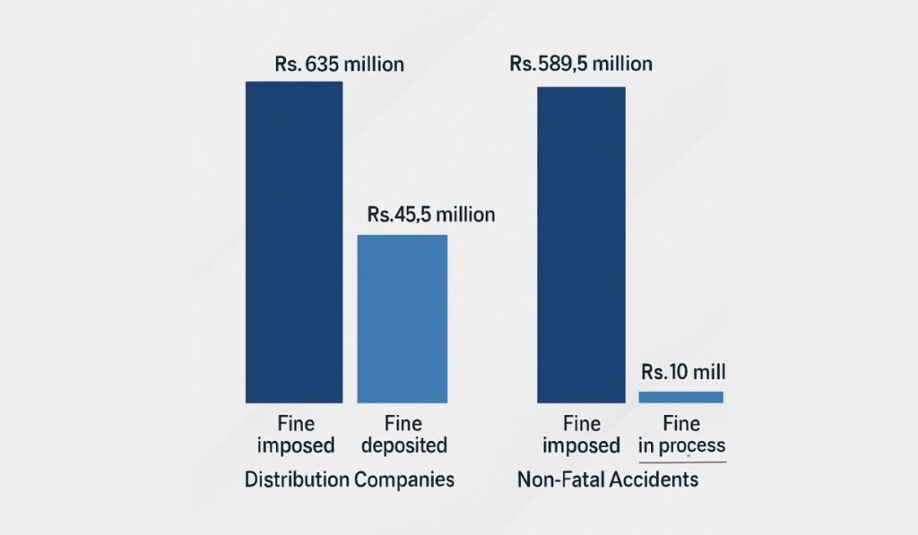 NEPRA–a regulator in Pakistan’s power sector companies, including distribution giants like K-Electric and national transmission operator NTDC, has fined a total of Rs 975 million for fatal and non-fatal workplace accidents, yet just Rs 45.5 million has been deposited so far. The remaining penalties—over 95%—are currently being contested in courts or await execution.