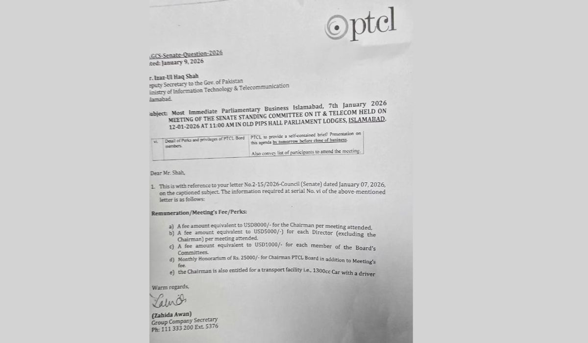 Lawmakers have described the perks as “shahana” (royal/extravagant) and unacceptable for a public-sector entity under financial strain, calling for greater accountability and transparency in governance. The revelations have raised serious questions about PTCL’s performance, board accountability, and the use of taxpayer funds in state-owned enterprises.