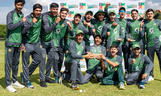 HARARE: Pakistan Under-19 cricket team delivered a commanding performance to clinch the Zimbabwe Under-19 OD Tri-Series title, thrashing hosts Zimbabwe Under-19 by nine wickets with a staggering 202 balls to spare in the final at Old Hararians Sports Club.