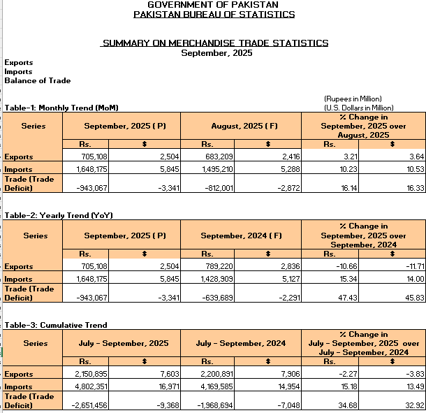 The narrowing of the trade gap in September 2025 reflects cautious optimism for Pakistan’s external sector. With sustained policy efforts and favorable global market conditions, the country may be on a gradual path toward improving its trade balance and strengthening its macroeconomic fundamentals.